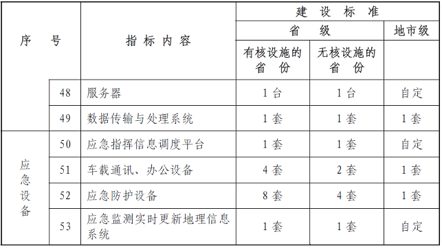 五、核与辐射事故应急专用设备配置